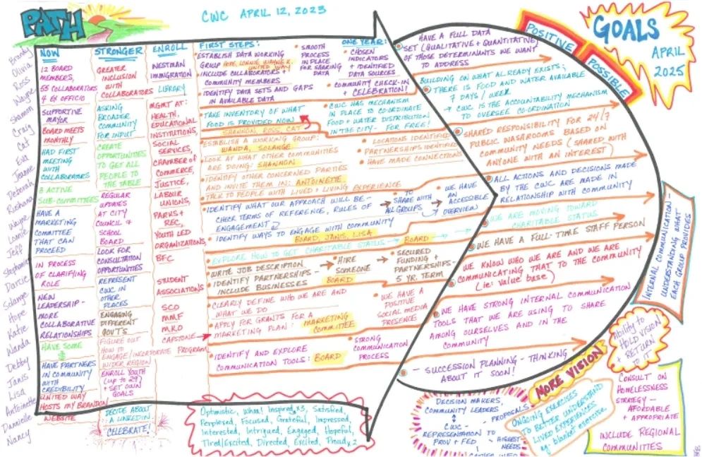 April 2023, community localized in Brandon, Manitoba on Treaty Two Territory gathered for solution focused discussion, visioning a PATH for community to collaborate toward wellness. Thoughtful considerations were shared and several areas were identified for which community could take steps toward broader wellness. And thus, the CWC PATH was created to guide our efforts. Several working groups were established, and the CWC set to work.